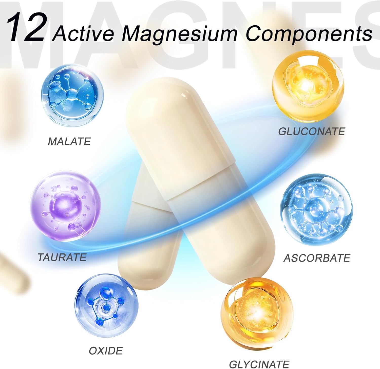 It contains 12 highly bioavailable magnesium forms, helping your body absorb and use magnesium more effectively than single-form supplements.